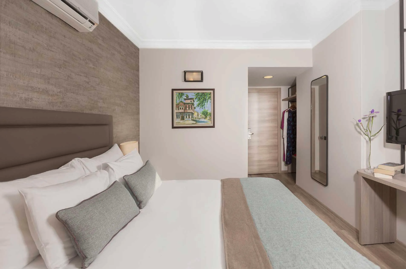 Panoramik manzaralı, klimalı, özel banyolu, minibarlı, uydu kanallı düz ekran TV’li, balkonlu odalar kaliteli ve çok konforlu bir konaklama deneyimi sunuyor. Odaların bir kısmı bahçeye, bir bölümü de havuz alanına bakıyor. Ayrıca kanepeli ayrı bir oturma alanında keyifle vakit geçirebileceğiniz oda tipleri de mevcut. Tesislerde beklentilerinize göre tercih yapabileceğiniz oda tipleri arasında Dubleks Oda, Havuz Manzaralı Junior Suit, Standart Çift Kişilik Oda, Aile Odası, Bahçe Manzaralı Standart Çift Kişilik/İki Yataklı Oda ve Dubleks Suit yer alıyor.
